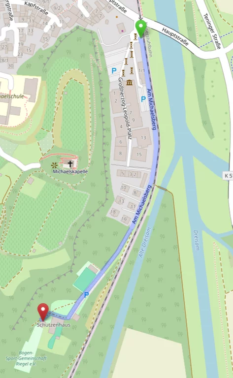 Um unseren Bogenplatz zu erreichen, müsst ihr an der ehemaligen Brauerei in Riegel, heute Kunstgalerie Messmer, dem Radweg Richtung Bahlingen folgen. Wo dieser links über eine Brücke weiterführt, geht ihr geradeaus weiter. Nach einigen Metern endet die befestigte Straße und es geht auf einem Feldweg weiter. Vorbei am Tennisplatz, immer dem Weg folgend könnt ihr unseren Bogenplatz nicht mehr verpassen!